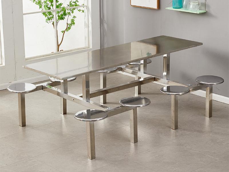 8人位不锈钢桌面圆凳餐桌